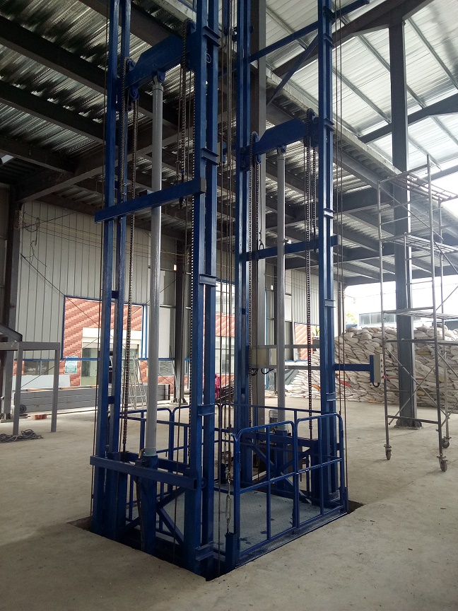 導(dǎo)軌式液壓貨梯:貨物提升機(jī)主要用各種工作層間貨物上下運(yùn)送;立體車庫和地下車庫二層以上高樓間、無法開挖地坑場(chǎng)所、頂層高度不能到達(dá)要求的場(chǎng)合等比較難解決的狹小空間,