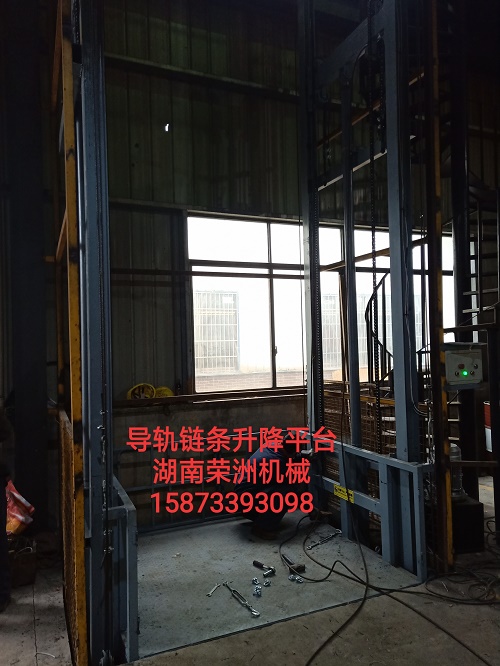 導(dǎo)軌鏈條式升降平臺(tái)又叫升降貨梯,主要用于車間倉庫的樓層之間的貨物升降,1-5層的多層都可適應(yīng).